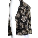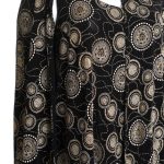 Новый трикотажный комплект из кардигана и ками американского бренда Onyx Nite с ярким золотым принтом на черном фоне. Кардиган свободного прямого фасона с длинным рукавом и застежкой на пуговку (на воздушной петле). Ками фасона «трапеция», без рукавов со скругленным вырезом горловины. Яркий, стильный, вариант на торжество или праздник. В составе: 90% натуральный ацетат, 10% эластан, без подклада — ткань эластичная, принт с золотым напылением (искрится и переливается на свету). Оригинал из США. Состояние — новое, с фирменной биркой Onyx.