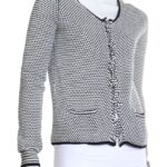 Трикотажный кардиган итальянского бренда Marella (группы Max Mara) черно-белого цвета. Прямой фасон с длинным рукавом и застежкой на потайные крючки. Небольшие врезные кармашки. Бирка с составом срезана: экспертная оценка — хлопок: ткань средней плотности, эластичная. Состояние — отличное.