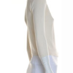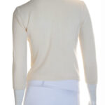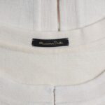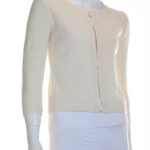 Трикотажный кардиган Massimo Dutti цвета молочных сливок. Прямой укороченный фасон с застежкой на крючки. Рукав 3/4. Состояние — хорошее (небольшое загрязнение с внутренней стороны воротника, едва заметное пятно по спинке — отстирывается). Бирка с составом срезана — экспертная оценка: шерсть.