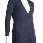 Оригинал. Новый кардиган концерна Max Mara темно-синего цвета. Свободный удлиненный фасон «трапеция». Перед и рукава из фактурного трикотажа, спинка — из бархатистой вискозы. Длинный рукав. Глубокий V-образный вырез горловины. Подвязка по спинке на декоративный бантик. Застежка на пуговки. В составе: 72% вискоза, 28% п.э (перед), 100% вискоза (спинка) — ткань экстра качества: средней плотности, мягкая, бархатистая. Состояние — новое, из аутлета концерна MaxMara (ярлык бренда надрезан — это политика аутлета).