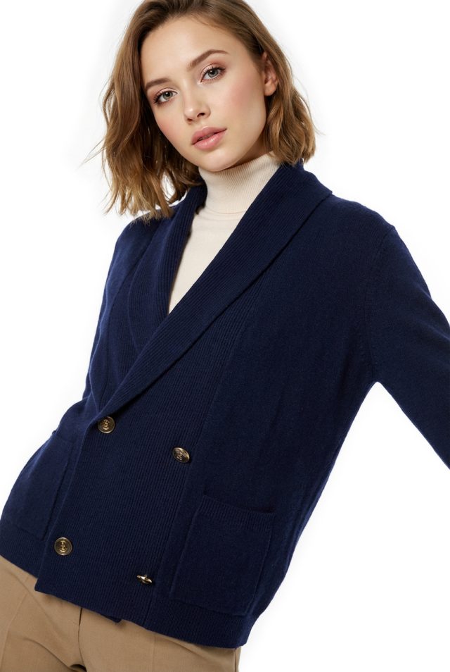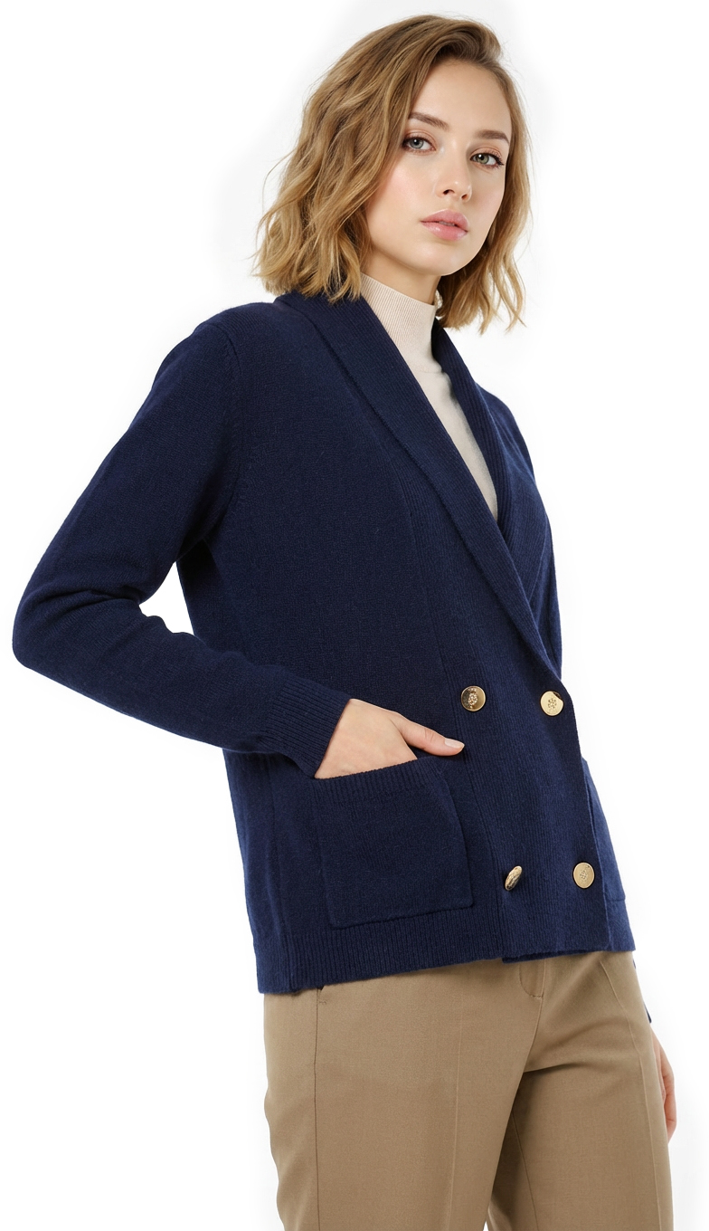 Новый трикотажный кардиган Ralph Lauren синего, чернильного цвета. Свободный двубортный фасон с длинным рукавом, декорированный яркими большими золотыми пуговками с гравировкой бренда RLR. Накладные кармашки по переду. В составе 82% шерсть, 10% нейлон, 7% кашемир, 1% эластан, без подклада — ткань экстра качества: мягкая, теплая, приятная к телу. Оригинал из США. Продается с фирменной биркой магазина Ralph Lauren. Цена на бирке — 175$.