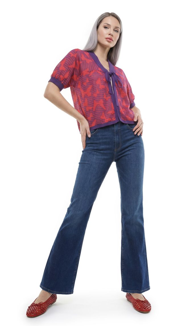 Новый трикотажный кардиган премиального итальянского бренда Stefanel в красно-фиолетовых тонах. Свободный укороченный фасон с открытым запахом и подвязкой на кантик. Приспущенный короткий рукав «колокольчик». В составе: 70% хлопок, 30% полиамид: ткань легкая, невесомая, полупрозрачной вязки. Состояние — новое, с фирменной биркой магазина Stefanel. Цена на бирке — 145 евро (!).