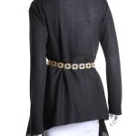 Стильный трикотажный кардиган немецкого бренда Update черного цвета. Удлиненный фасон с открытым запахом, без застежки, и длинным рукавом. Глубоким вырез горловины по типу «шалька». Перед с резными лацканами, длиннее спинки. Интересное сочетание фактур: рифленой и гладкой. Можно носить нараспах или приталить на пояс (для примера, пояс в комплект не входит). В составе: 95% акрил, 5% эластан — ткань легкая, мягкая, отлично садиться по фигурке. Состояние — отличное.