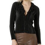 Новый дизайнерский кардиган французского бренда класса «люкс» Zapa Paris черного цвета. Приталенный фасон с глубоким вырезом горловины, подчеркивающим декольте, и застежкой на потайные крючки. Красивое декоративное жабо в обрамлении горловины. Длинный рукав. Смотрится дорого и стильно. Премиальное качество пошива и дизайна. В составе 100% п.э — ткань экстра качества: очень шелковистая, с благородным отливом, по фактуре в жатку. Эксклюзив: в единственном экземпляре в России. Состояние — новое, с фирменной биркой Zapa. Цена на бирке — 100 евро.