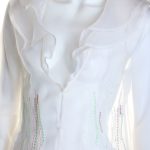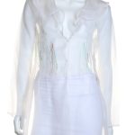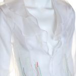 Новый шелковый кардиган французского бренда класса «люкс» Zapa Paris молочно-белого цвета. Приталенный «летящий» фасон с длинным рукавом и застежкой на потайные крючки. Объемное жабо по линии горловины. Вышивка шелковыми нитями в красно-зеленых тонах. Элегантное дополнение к летнему гардеробу — смотрится дорого и стильно. Премиальное качество пошива и материалов. В составе: 100% натуральный шелк — ткань экстра качества: легкая, воздушная, прозрачная. Эксклюзив: в единственном экземпляре в России. Состояние — новое, с фирменной биркой Zapa.