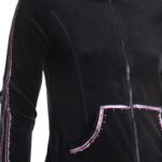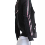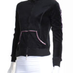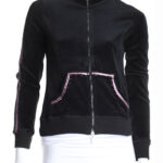 Новая кофта бомбер итальянского бренда Sarah Chole черного цвета, декорированная серебристыми пайетками, стразами и розовой атласной лентой. Свободный фасон с застежкой на молнию. Врезные кармашки по бокам. Длинный рукав с трикотажной манжетой. Широкая резинка по талии. Воротничок стойка. Фирменная вышивка логотипа бренда по спинке. В составе 80% хлопок, 20% п.э — ткань средней плотности, мягкая, бархатистая на ощупь. Состояние — новое, с фирменной биркой Sarah Chole.