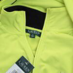 Новая трикотажная олимпийка Ralph Lauren яркого салатного цвета с контрастной черной окантовкой. Фирменный лейбл LRL на передней полочке. Застежка на молнию. Приталенный покрой. Врезные кармашки на молнии в регланах переда. Длинный рукав реглан с широкой манжетой. Состав: 87% хлопок, 13% эластан. Ткань плотная, мягкая, эластичная. Длина по середину ягодиц. Состояние — новое, с фирменной биркой магазина Ralph Lauren.