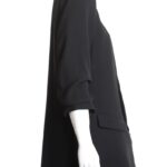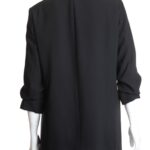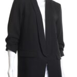 Классический удлиненный жакет Zara черного цвета с присборенным рукавом длиной 3/4. Свободный фасон на запах, без застежки. Глубокий вырез горловины с резным воротничком. Бирка с составом срезана — экспертная оценка — п.э: ткань мягкая, по фактуре «крепе». Состояние — идеальное, как новое.