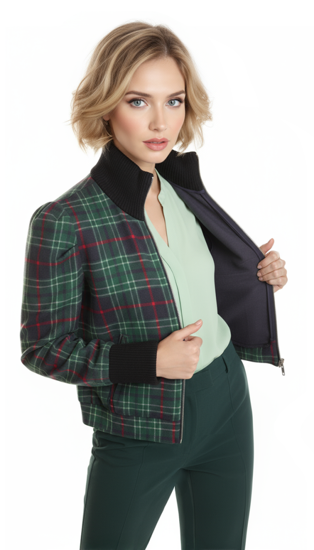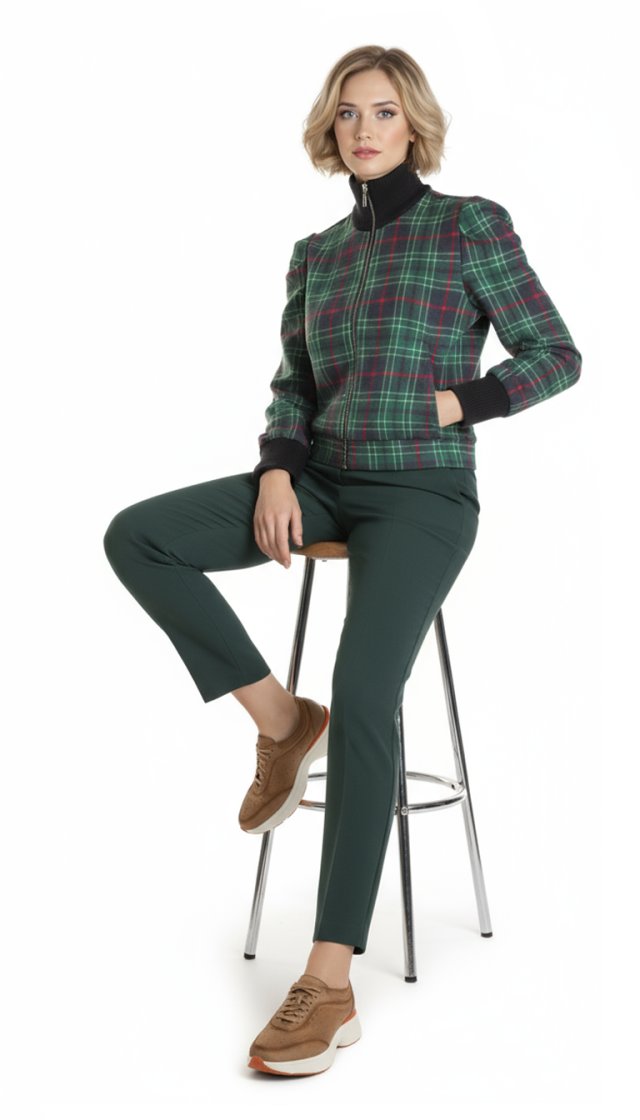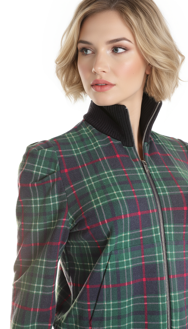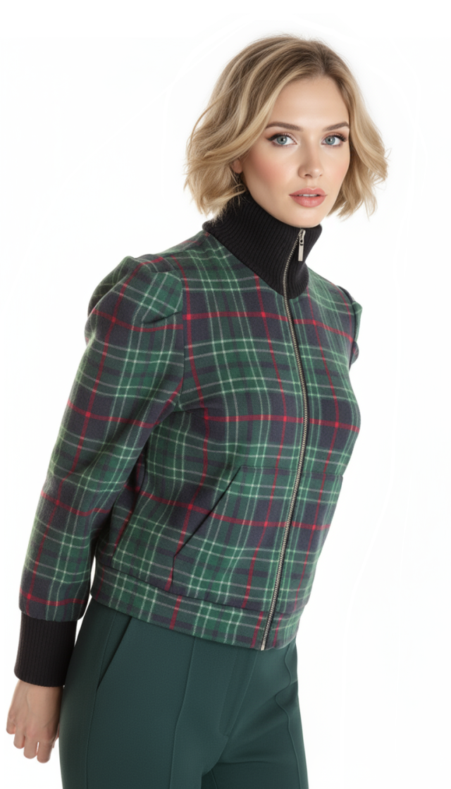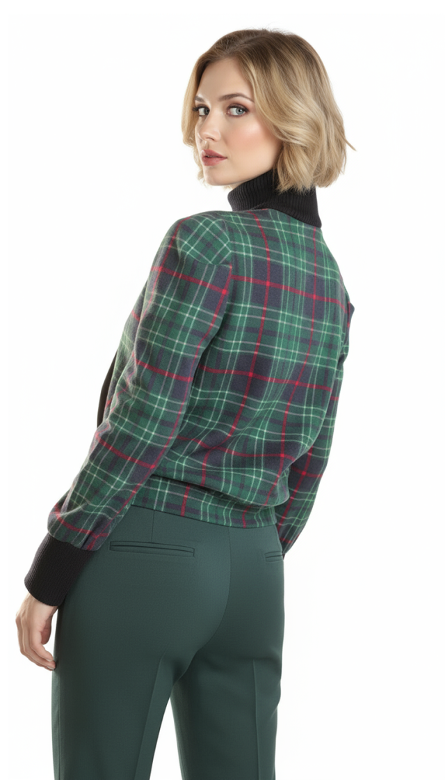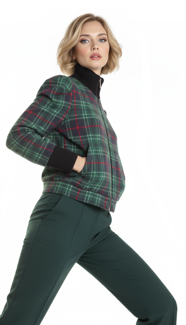 Оригинал. Новый бомбер жакет концерна Max Mara (линия Max&Co) в шотландскую клетку зеленых, темно-синих и красных тонов. Укороченный покрой с широкой резинкой на манжетах рукавов и воротничке стойка. Кармашки по бокам. Застежка на молнию с брендированной собачкой. Утепленный подклад с «подшерстком». В составе: 92% хлопок, 8% эластан, на подкладе из 50% шерсти и 50% акрила — ткань экстра качества: средней плотная, мягкая. Состояние — новое, из аутлета концерна MaxMara (ярлык бренда надрезан — это политика аутлета).