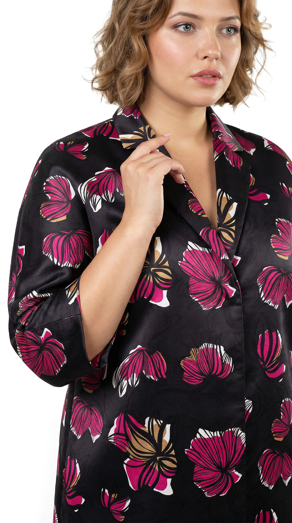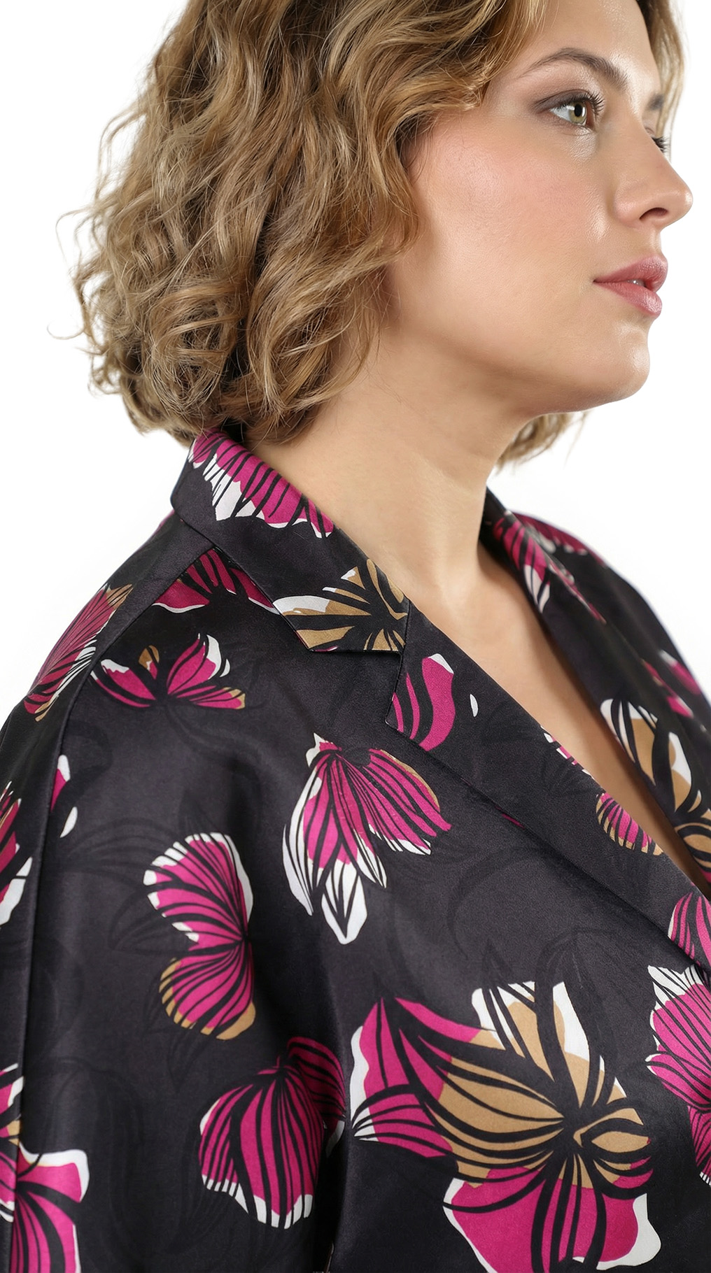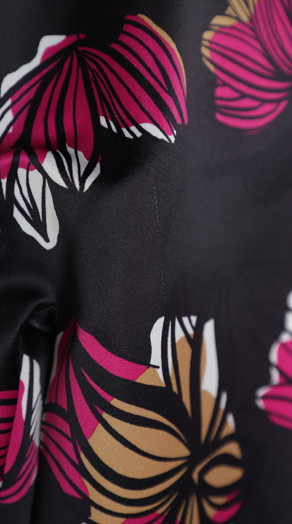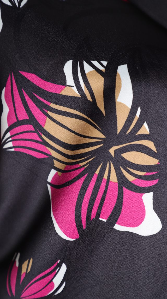 Оригинал. Новый кардиган-плащ концерна Max Mara (линия Marina Rinaldi) с ярким цветочным принтом в малиново-бежевых тонах на черном фоне. Фасон «трапеция» с застежкой на кнопочки и рукавом длиной 3/4. Врезные кармашки в боковых швах. Яркий, стильный, вариант на весну и прохладное лето. В составе: 100% п.э, на подкладе из п.э — ткань средней плотности, мягкая, шелковистая. Пошив — Румыния. Состояние — новое, из аутлета концерна MaxMara (ярлык бренда надрезан — это политика аутлета). По спинке около левого рукава есть практически незаметная затяжка (см. последнее фото) — существенно учтено в цене.