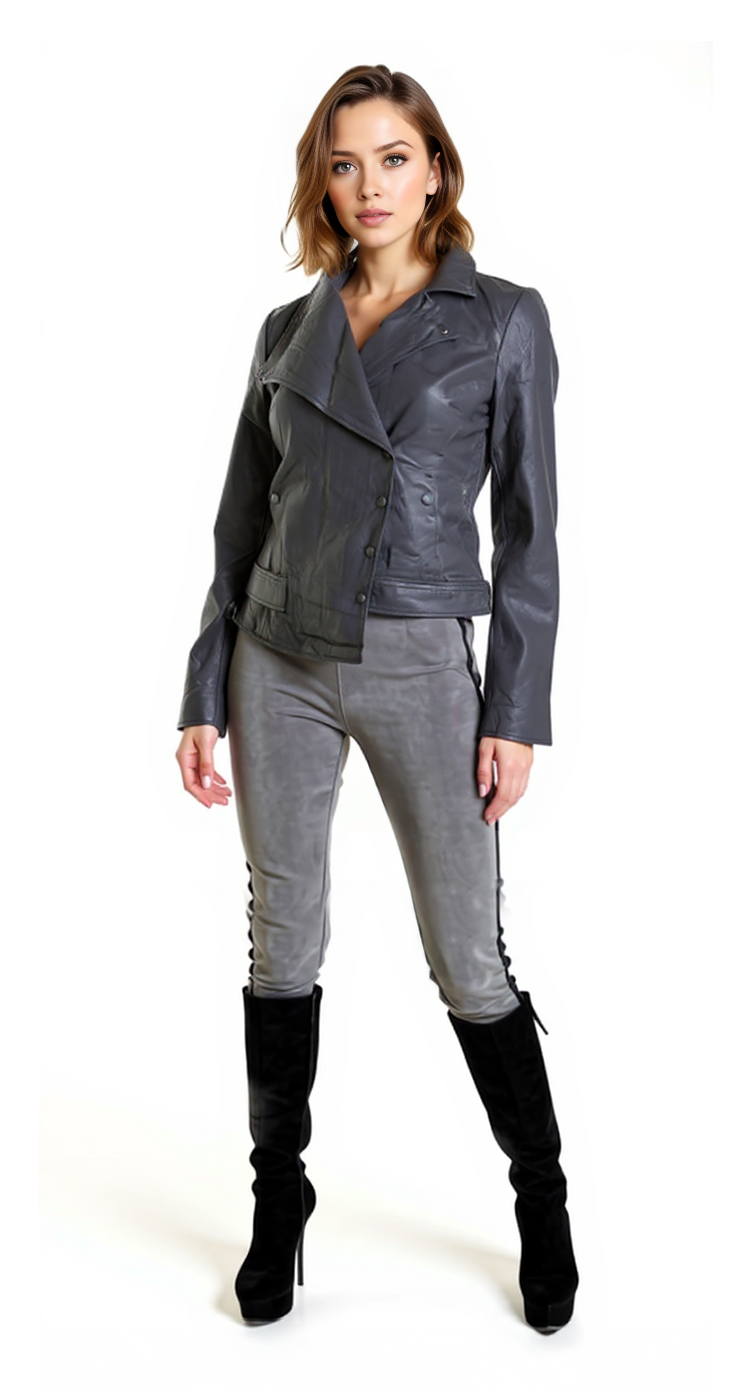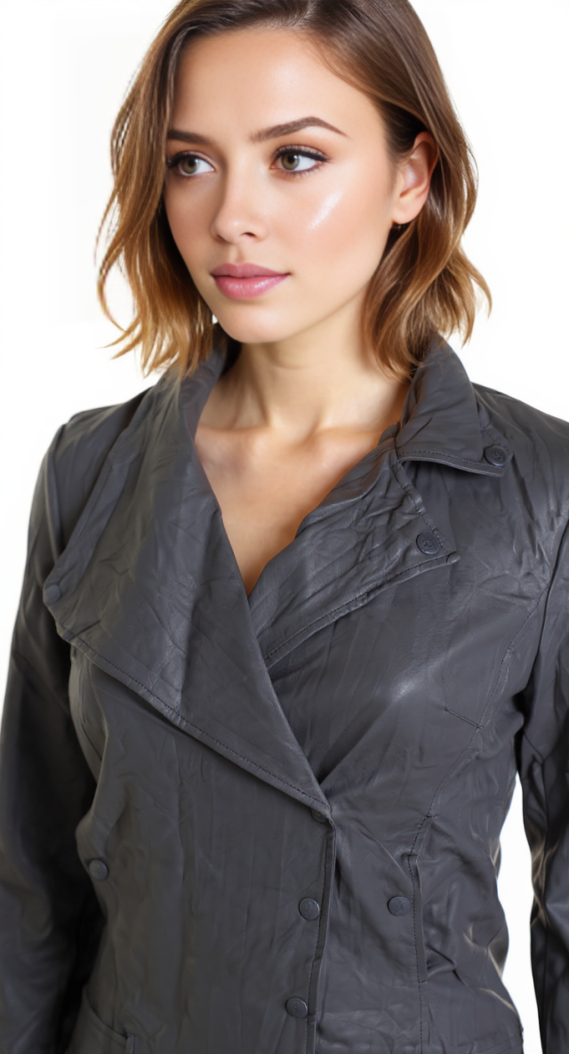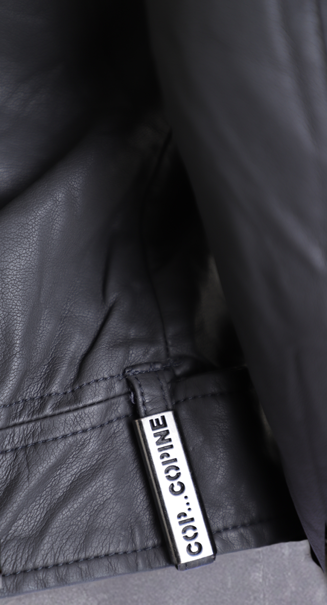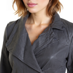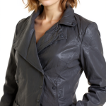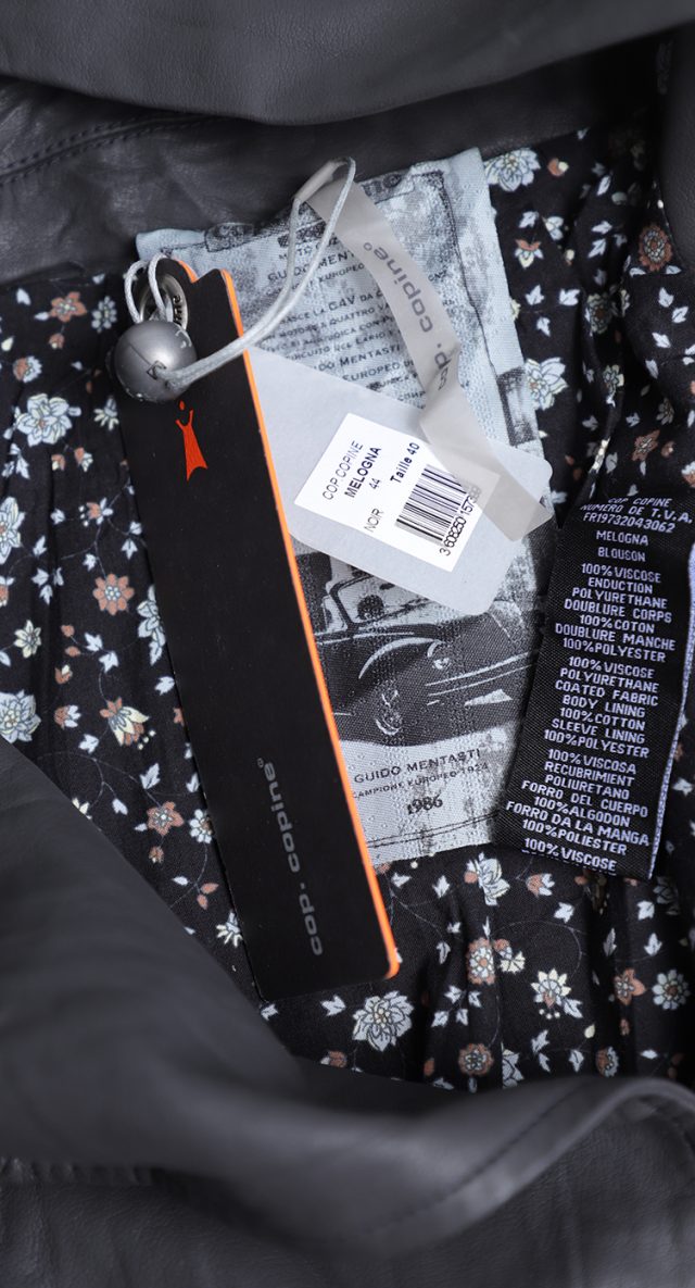 Новая куртка легендарного французского бренда Cop Copine темно-серого цвета. Асимметричный двубортный фасон с длинным рукавом и застежкой на брендированные кнопки. Отложной воротничок с V-вырезом. Шлевка по талии с фирменной плашкой Cop Copine. Врезные кармашки по бокам. В составе: 100% вискоза, на ярком цветочном подкладе из 100% хлопка — ткань мягкая, смотрится как натуральная кожа экстра выделки. Состояние — новое, с фирменной биркой Cop Copine.