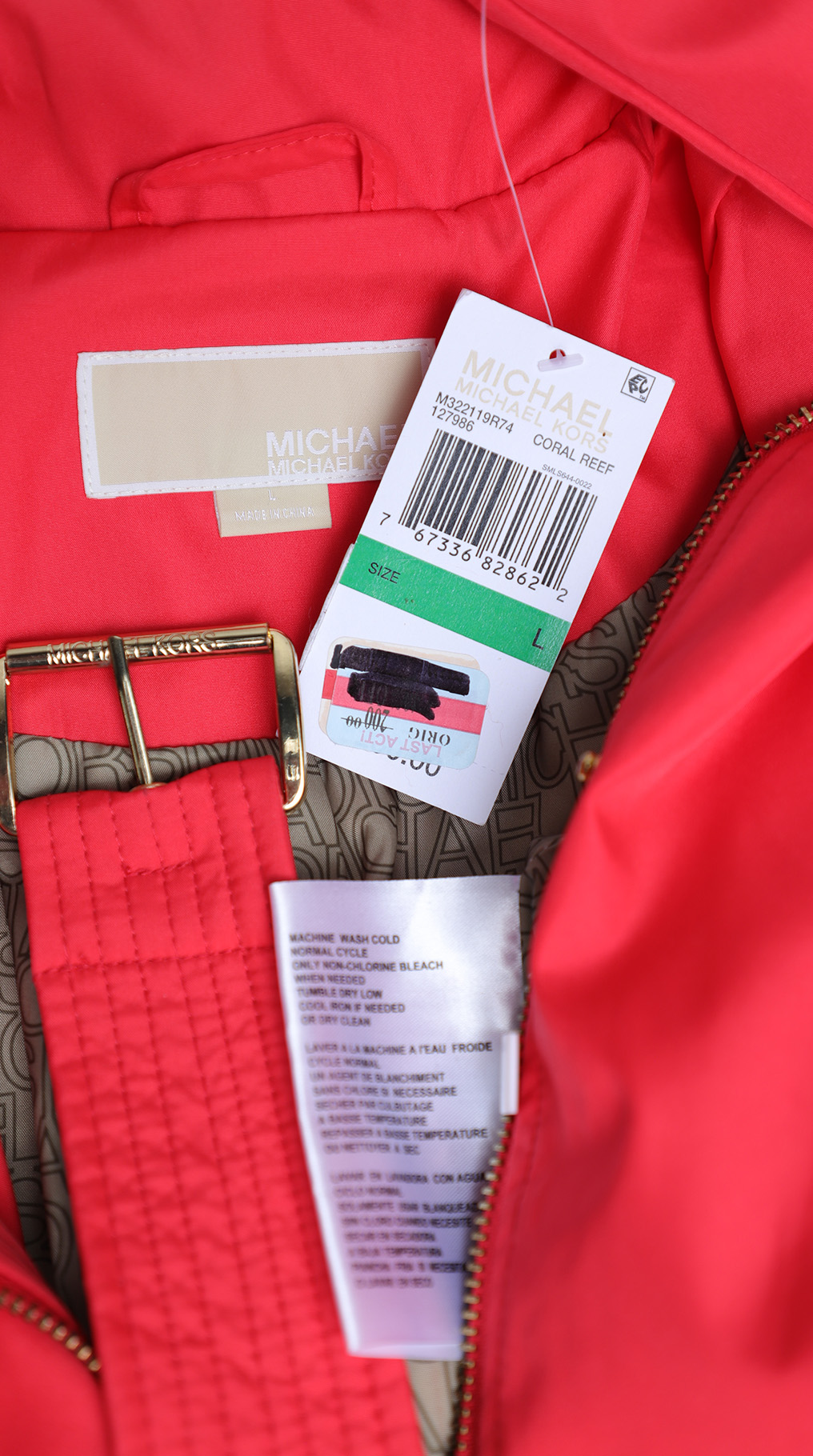 Новая куртка с капюшоном американского премиального бренда Michael Kors яркого морковного цвета. Стильный приталенный фасон с поясом по талии. Воротник стойка с потайным капюшоном на молнии. Застежка на молнию и фирменные кнопки с гравировкой бренда Michael Kors. Длинный рукав с декоративной отстрочкой на локтях. Врезные кармашки по бокам. Красочный подклад с брендированным принтом. В составе: 100% п.э, на подкладе из 100% п.э — ткань непромокаемая — подойдет как в прохладную, так и дождливую погоду. Оригинал из США. Состояние — новое, с оригинальной биркой Michael Kors. Цена на бирке — 200$.