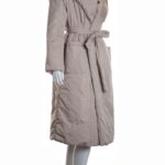 Новая куртка с капюшоном Zarina светло-бежевого цвета. Удлиненный свободный фасон на запах, без застежки с подвязкой на пояс. Втачной капюшон с объемным воротничком. Стеганка с легким утеплителем (до -10 градусов). Большие накладные кармашки. В составе: 100% полиэстр, утеплитель 100% полиэстер, на подкладе из п.э. — мягкий, легкий (практически невесомый). Состояние — новое, без бирки (распродажа стока магазина).