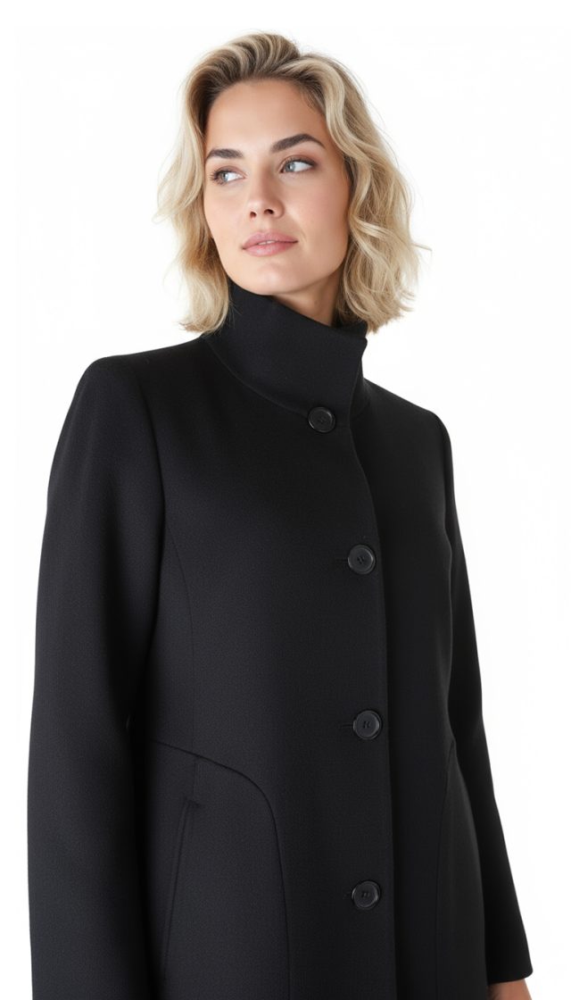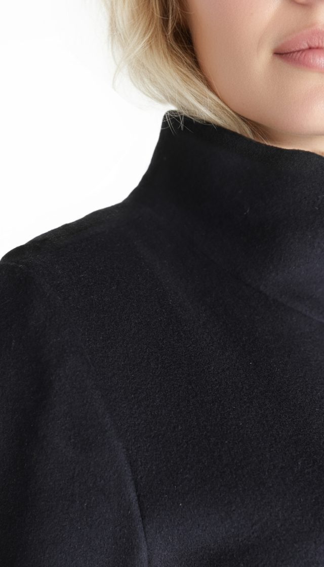Оригинал. Новое шерстяное пальто премиального итальянского бренда Loro Piana (линия Fleurette, созданная эксклюзивно для США) черного цвета. Слегка расклешенный от груди покрой с высоким воротничком «стойка», застежкой на пуговки и длинным рукавом. Врезные, красиво оформленные, кармашки по бокам. В составе: 100% высококачественная шерсть, на подкладе из натурального ацетата — ткань экстра качества: очень мягкая (как шелк), фактурная (с небольшим ворсом). Пошив — США. Состояние — новое, с биркой американского магазина. Цены на бирке — 795$. Эксклюзив: в единственном экземпляре в России.
