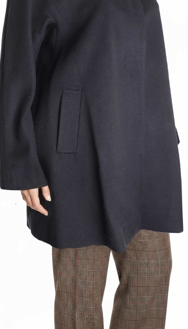 Оригинал. Новое шерстяное пальто премиального итальянского бренда Loro Piana (линия Fleurette, созданная эксклюзивно для рынка США) черного цвета. Слегка расклешенный от груди покрой с отложным воротничком и застежкой на пуговки за потайной планкой. Длинный приспущенный рукав. Врезные кармашки по бокам. В составе: 100% высококачественная шерсть, на подкладе из натуральной вискозы — ткань экстра качества: очень мягкая (как шелк), фактурная (с небольшим ворсом). Пошив — США. Состояние — новое, без бирки, без носки. Цены на подобные пальто стартуют с 1200$. Эксклюзив: в единственном экземпляре в России.