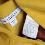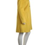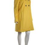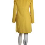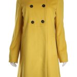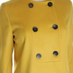 Шерстяное двубортное пальто итальянского концерна Max Mara (линия Marella). Яркий, привлекающий внимание, лимонно-золотой цвет. Фасон двубортный прямой, слегка расклешенный от талии. Застежка на фирменные пуговки «под дерево». Врезные кармашки по бокам. Оригинал из Италии. В составе: 100% высококачественная шерсть Virgin Wool, на подкладе из 100% натурального ацетата. Оригинал из Италии. Состояние — хорошее, после чистки (есть дефект по спинке — ткань истерлась после чистки — см. предпоследнее фото).