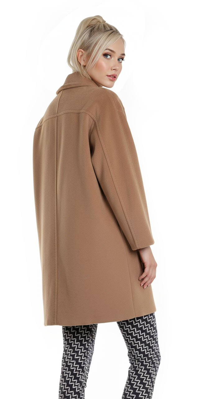 Оригинал с биркой. Новое шерстяное пальто концерна Max Mara (линия Studio) бежевого цвета. Свободный покрой «бочонок». Скошенная застежка на перламутровые пуговки за потайной планкой. Отложной воротничок, который можно дополнить лацканами, если расстегнуть верхнюю пуговку. Врезные кармашки в боковых швах. Длинный приспущенный рукав с красивой декорированной отстрочкой. Шелковистый подклад с фирменной вышивкой Max Mara Studio. В составе: 100% высококачественная шерсть (Virgin Wool), на подкладе из натуральной вискозы — ткань экстра качества: очень мягкая (как шелк), фактурная (с небольшим ворсом). Состояние — новое, с оригинальной биркой Max Mara Studio. Цена на бирке — 1225$ (!).