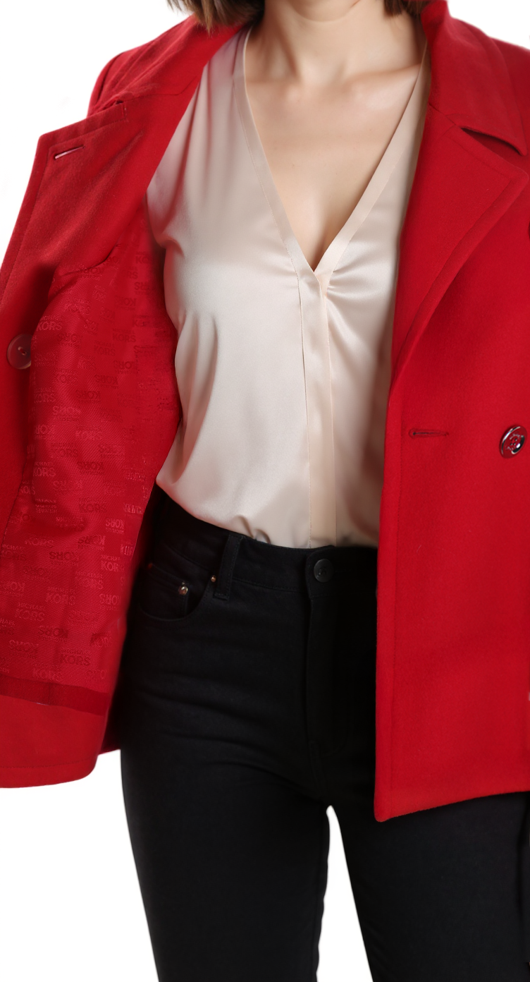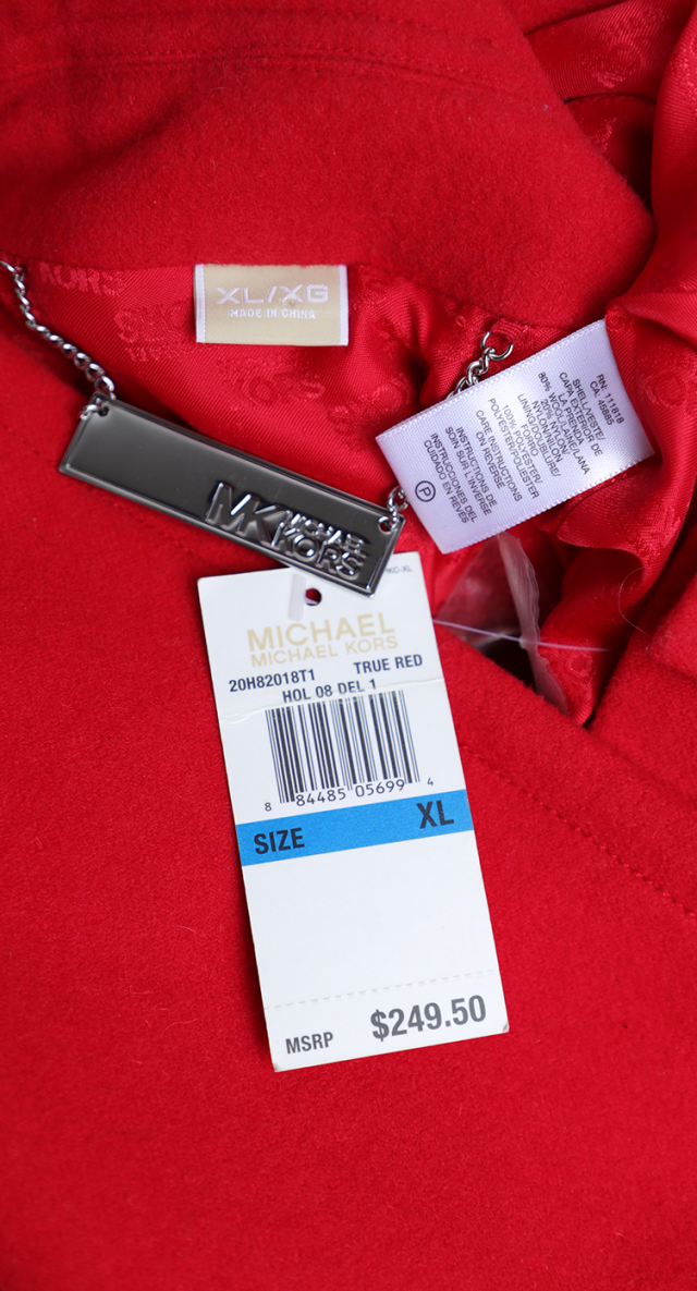 Оригинал с биркой. Новое шерстяное пальто американского премиального бренда Michael Kors яркого красного цвета. Двубортный расклешенный фасон с застежкой на большие фирменные пуговки с гравировкой бренда. Кокетка и складка по спинке для комфортной посадки. Длинный рукав, декорированный пуговкой. Фирменный брендированный подклад. В составе: 80% шерсть, 20% нейлон — ткань экстра качества: мягкая, теплая, на подкладе из п/э. Оригинал из США. Состояние новое, с фирменной биркой магазина Michael Kors. Цена на бирке — 249.50$.