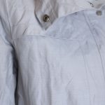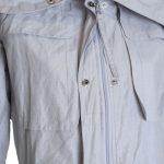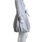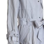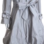 Новый дизайнерский плащ французского бренда класса «люкс» Zapa Paris светло-серого цвета с серебристым отливом. Женственный приталенный фасон с подвязкой на пояс и объемным отложным воротничком. Длинный рукав, декорированный хлястиками с застежкой на пряжку. Застежка на потайную молнию и кнопки. Врезные боковые кармашки. Яркий «полосатый» подклад. Премиальное качество пошива и материалов. Смотрится стильно и дорого. В составе: 55% хлопок, 41% п.э, 4% металлик, на подкладе из п.э: ткань экстра качества: легкая, мягкая, водонепроницаемая, по фактуре «жатка». Эксклюзив: в единственном экземпляре в России. Состояние — новое, с фирменной биркой Zapa. Цена на бирке — 295 евро (!)