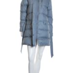 Удлиненный пуховик Ralph Lauren светло-голубого цвета — легкий, воздушный как пушинка, и в тоже время очень теплый. Приталенный фасон с воротничком стойка, застежкой на потайную молнию (или кнопки с гравировкой бренда), и подвязкой на пояс. Большие врезные кармашки. Длинный рукав. В составе: 80% пух, 20% перья, на подкладе из п.э. Состояние — отличное, но есть с виду незаметные пятнышки на подоле и подкладе.
