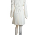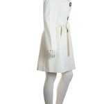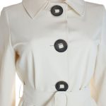 Стильный итальянский тренч Cinzia Rocca цвета молочных сливок. Элегантный прямой фасон с подвязкой на пояс и длинным рукавом. Воротничок стойка. Врезные кармашки по бокам. Застежка на яркие большие пуговки «под дерево». Шлица по спинке. В составе: 93% п.э, 7% полиуретан, на подкладе из 60% ацетата и 40% вискозы. Безупречное качество пошива. Состояние — идеальное, как новое, после чистки (только на поясе сбоку есть точки от заколок — незаметные в носке).
