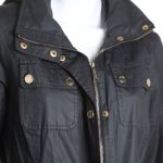 Фирменная ветровка с капюшоном Michael Kors черного цвета. Женственный приталенный покрой с длинным рукавом и подвязкой на пояс. Застежка на стильную золотую молнию и кнопки. Сворачиваемый капюшон (можно спрятать внутрь, под молнию, на воротничке). Накладные кармашки. Красивая отстрочка на плечиках. Брендированный подклад. В составе 100% хлопок, на подкладе из п/э — ткань премиум качества: легкая, мягкая, с водоотталкивающей пропиткой. Состояние — отличное.