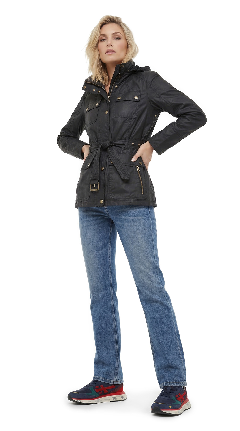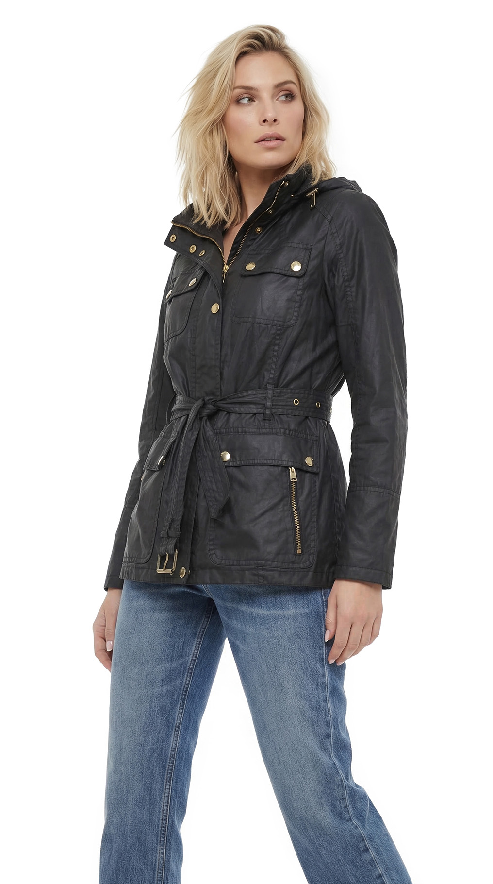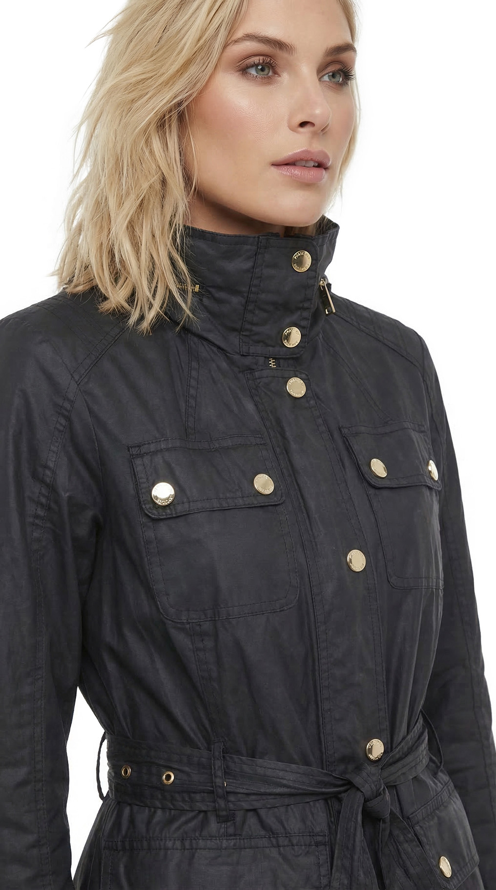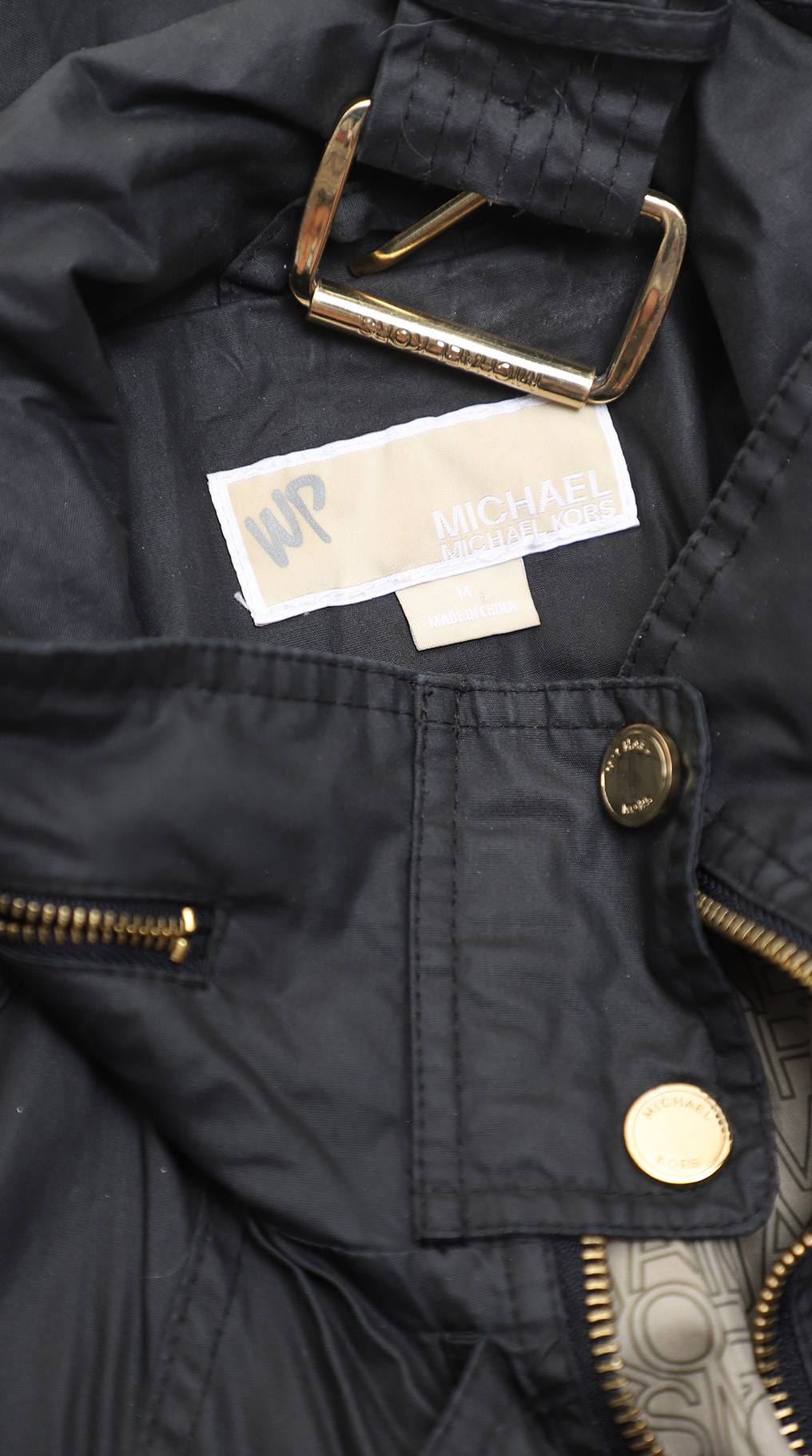 Фирменная куртка ветровка с капюшоном Michael Kors черного цвета. Женственный приталенный покрой с длинным рукавом и подвязкой на пояс. Застежка на стильную золотую молнию и кнопки. Сворачиваемый капюшон (можно спрятать внутрь, под молнию на воротничке). Накладные кармашки. Красивая отстрочка на плечиках. Брендированный подклад. В составе 100% хлопок, на подкладе из п/э — ткань премиум качества: легкая, мягкая, с водоотталкивающей пропиткой. Состояние — отличное.