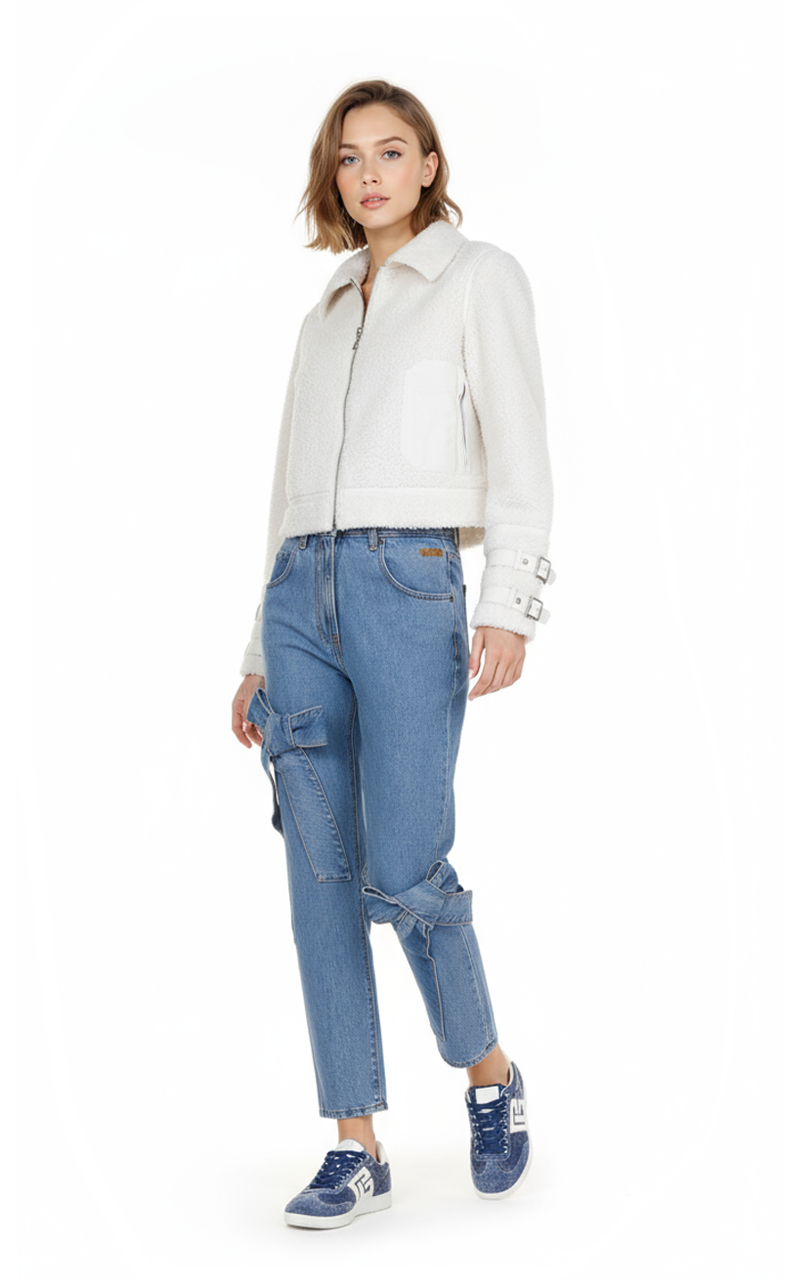 Новый жакет Guess «под овчинку» теплого молочного цвета. Укороченный свободный фасон с объемным воротничком и застежкой на молнию. Накладные боковые кармашки с отделкой «под кожу». Длинный рукав с ремешками на пряжках. С внутренней стороны отделка «под замшу». В составе: 100% п.э. — ткань мягкая, легкая и в тоже время теплая. Оригинал, привезен из США. Продается с фирменной биркой магазина Guess Los Angeles. Цена на бирке — 158$.
