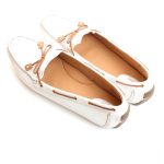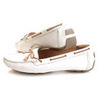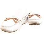 Кожаные мокасины английского бренда Clarks белого цвета с декоративной кожаной шнуровкой. Удобный фасон без каблучка. Анатомически удобная колодка. В составе — 100% натуральная мягкая кожа (верх, стелька), текстильная отдлелка. Состояние — отличное (практически незаметные внешне стертые носики).