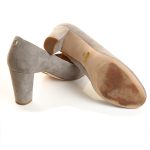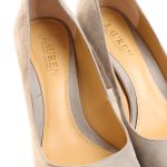 Кожаные (замшевые) туфли американского премиального бренда Ralph Lauren серого цвета. Женственный фасон с высоким устойчивым каблучком. Анатомически удобная колодка. Гербовый серебряный шильдик с гравировкой бренда RLL. Золотая фирменная плашка RLL на подошве. В составе — 100% натуральная замша (верх), 100% натуральная кожа (отделка, стелька). Состояние — хорошее (следов носки по верху нет, незначительные следы по оттделке). Оригинал из США — в единственном экземпляре в России.