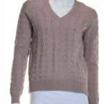 Новый джемпер Zarina бежевого цвета с длинным приспущенным рукавом и V-образным вырезом горловины. Красивая рельефная вязка. Резинка по бедрам. Шлички в боковых швах для комфортной посадки. В составе: 50% вискоза, 30% п.э, 20% полиамид: ткань средней плотности, очень мягкая и комфортная к телу. Состояние — новое, без бирки (распродажа стока официального магазина).
