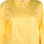 Хлопковый жакет американского бренда C.J. Banks желтого цвета. Стильный приталенный фасон с длинным рукавом. Накладные и врезные кармашки по переду. Застежка на пуговки. В составе: 98% хлопок, 2% спандекс, без подклада. Состояние — отличное.