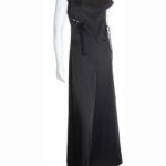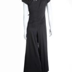 Новый комбинезон легендарного французского бренда Cop Copine черного цвета с коротким рукавом, широкими брючинами и красивой декоративной шнуровкой по талии. Застежка на длинную молнию по спинке. Смотрится элегантно и дорого. В составе: 80% п.э, 18% вискоза, 2% эластан, без подклада. Ткань плотная, шелковистая, по фактуре в мелкий «рубчик». Состояние — новое, с оригинальной запломбированной биркой Cop Copine.