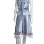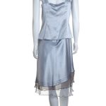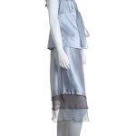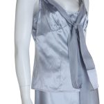 Новый шелковый костюм французского бренда класса «люкс» Zapa Paris серебристого (стального) цвета. Женственный фасон с топом на широких бретелях и юбочкой «трапеция». Топ — приталенный, выгодно подчеркивающий грудь за счет глубокого скругленного декольте и акцентной линии с защипами. Бретели декорированы шифиновым кантом, который можно подвязать в элегантный бантик. Топ застегивается сбоку на молнию. Юбочка — с пышными шифоновыми воланами, застежкой по спинке на молнию и посадкой по талии. Премиальное качество пошива и материалов. В составе: 55% натуральный шелк, 45% хлопок (шифон — 100% натуральный шелк) — ткань легкая, как пушинка, с красивым естественным шелковистым блеском, очень приятная и комфортная к телу. Эксклюзив: в единственном экземпляре в России. Состояние — новое, с фирменной биркой Zapa. Цена на бирке — 210 евро (!)