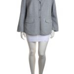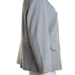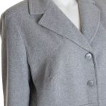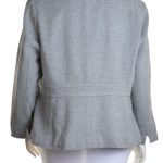 Утепленный пиджак полу-пальто из пальтовой ткани американского бренда East5th светло-серого цвета. Классический прямой фасон с длинным рукавом и застежкой на пуговки. Английский воротничок с лацканами. Накладные декоративные кармашки с клапанами. Баска по талии. В составе: 45% шерсть, 55% вискоза — ткань очень мягкая, как пух, и теплая, на подкладе из п/э. Привезен из США. Состояние — идеальное, как новое.