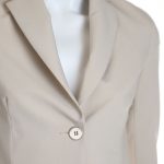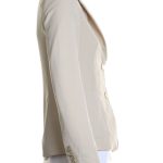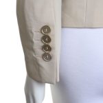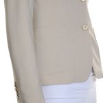 Новый летний пиджак итальянского бренда Laltramoda светло-бежевого цвета. Женственный приталенный фасон с застежкой на золотистые пуговки и V-образным вырезом горловины с резными лацканами. Длинный рукав, декорированный пуговками. Большие накладные кармашки. В составе: 24% вискоза, 70% п.э, 6% спандекс, на подкладе из 68% ацетата (аналога натурального шелка), 32% эластана — ткань средней плотности, мягкая. Пошив- Италия. Состояние — новое, с оригинальной биркой Laltramoda.