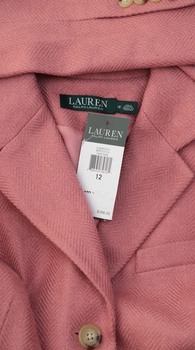 Новый пиджак Ralph Lauren редкого цвета пыльной розы. Полу-приталенный покрой с классическим резным воротничком, который можно легко превратить в воротничок стойку застежкой на пуговку. Застежка на фирменные пуговки с гравировкой бренда. Длинный рукав, декорированный пуговками. Шлица по спинке для комфортной посадки. Врезные кармашки. В составе: 39% лен, 25% вискоза, 24% хлопок, 12% шелк, на подкладе из 100% натурального ацетата. Яркое, стильное, дополнение к платью, брючкам или юбочке на весну, лето и раннюю осень. Оригинал, привезен из США. В единственном экземпляре в России. Продается с фирменной биркой магазина Ralph Lauren. Цена на бирке — 298$.