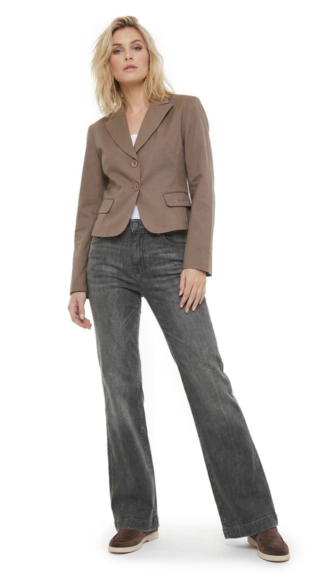 Новый хлопковый пиджак итальянского бренда Sarah Chole бежевого цвета. Укороченный приталенный фасон с длинным рукавом и резным воротничком с глубоким V-образным вырезом горловины. Застежка на большие пуговки. Врезные кармашки, один — с фирменной вышивкой на лацкане. В составе: хлопок — ткань плотная, хорошо держит форму. Состояние — новое, с фирменной биркой Sarah Chole.