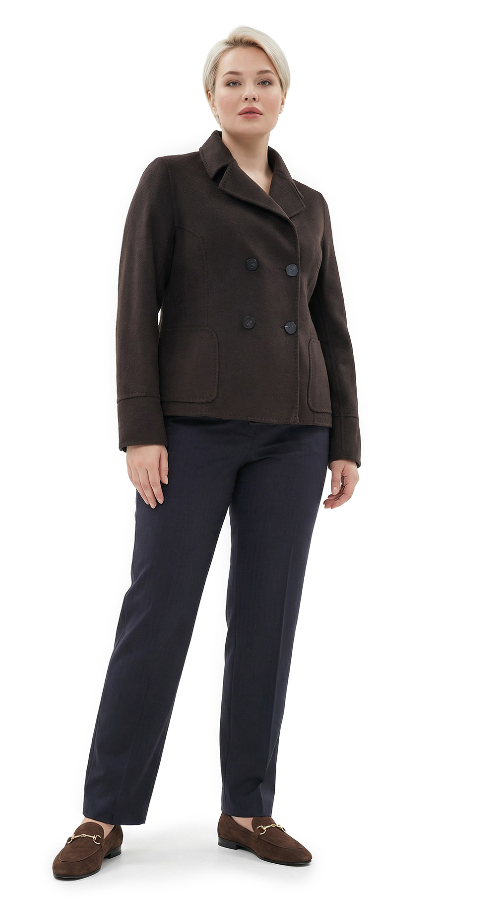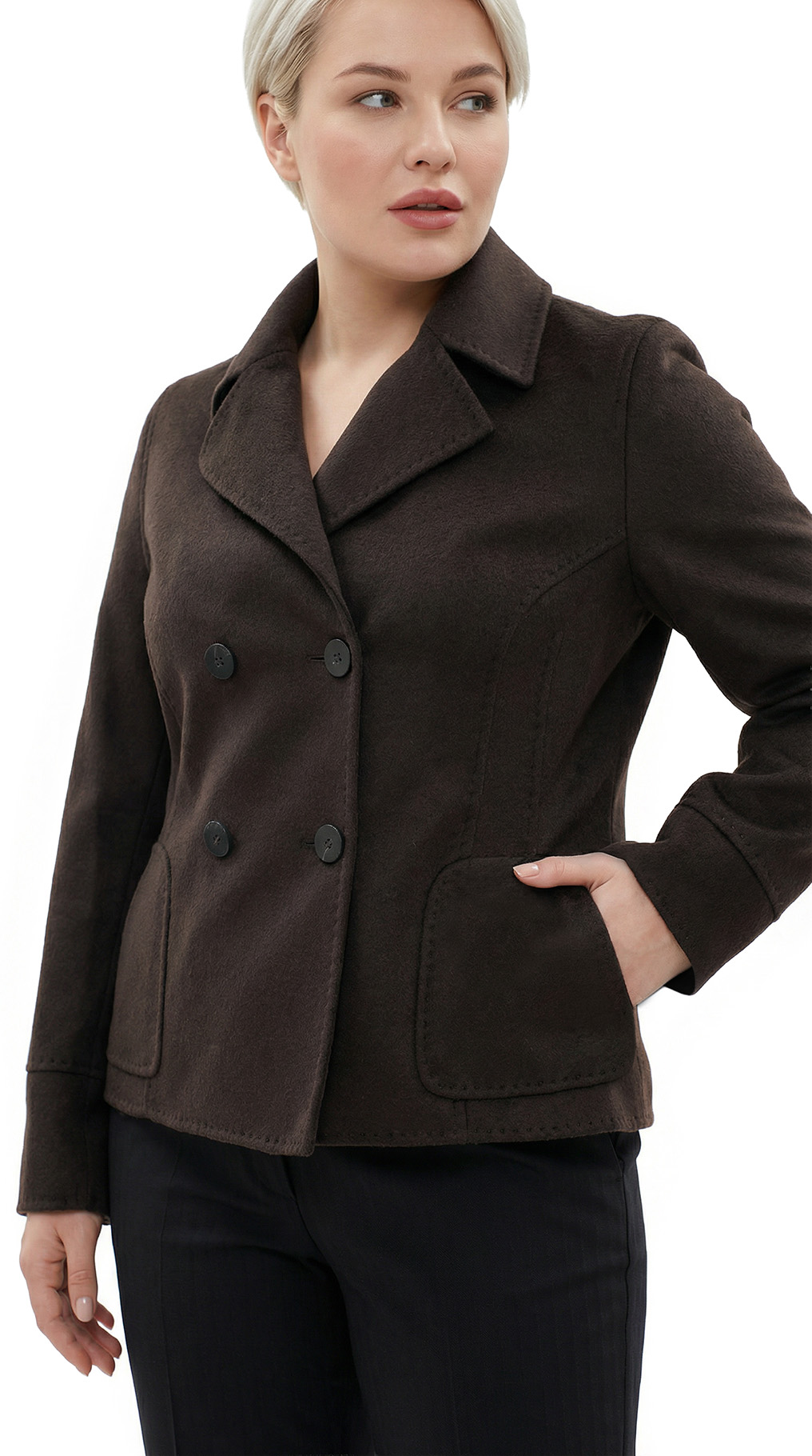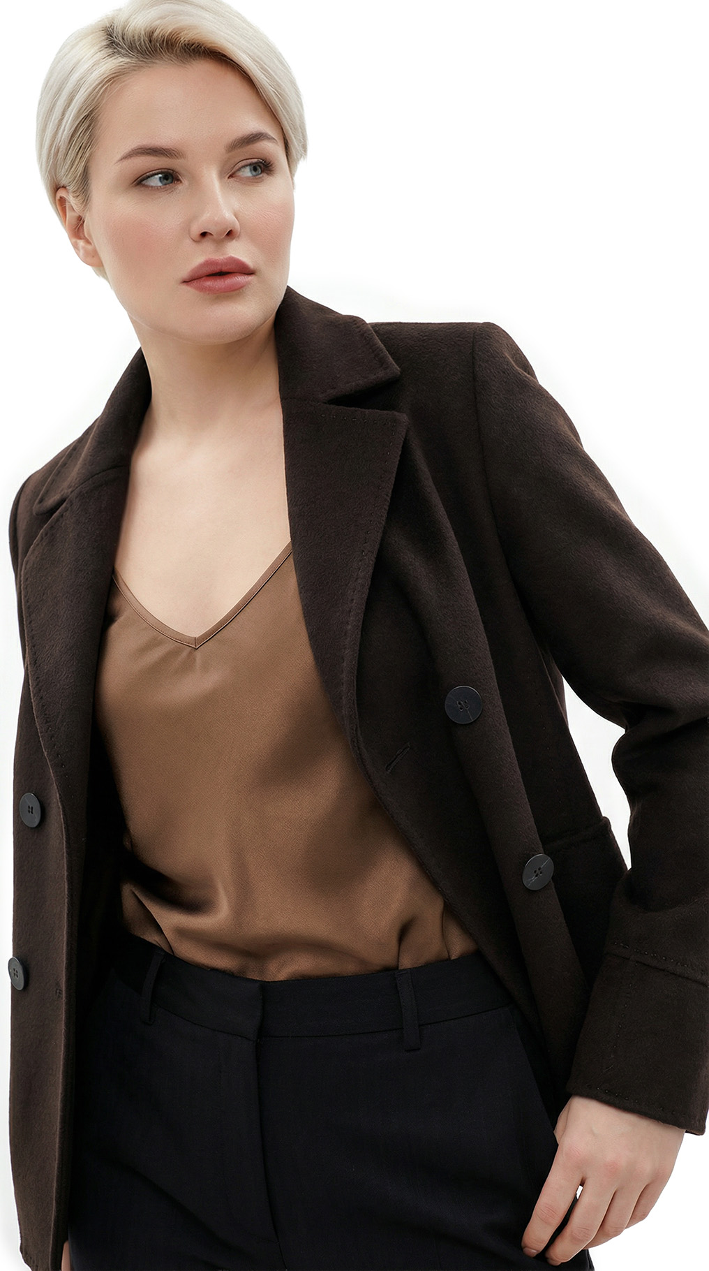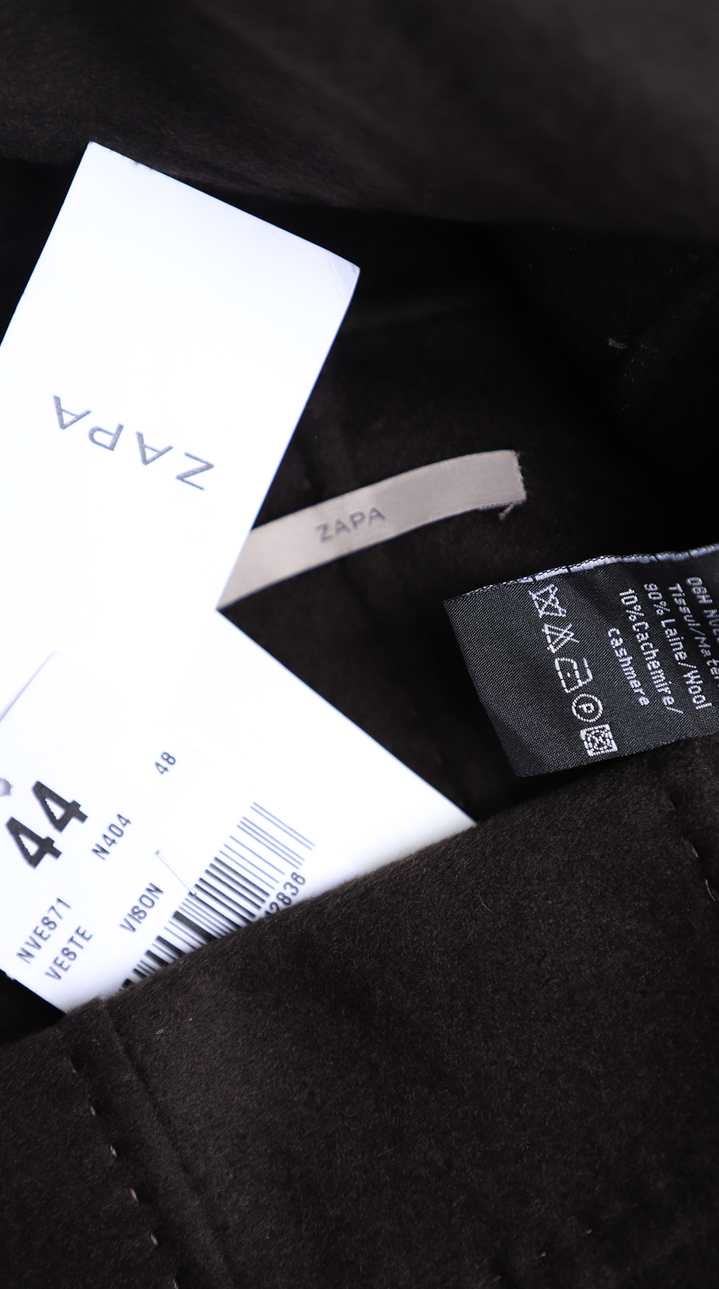 Новый дизайнерский шерстяной пиджак французского бренда класса «люкс» Zapa Paris кофейного (темно-коричневого) цвета. Женственный приталенный двубортный фасон с классическим отложным воротничком и длинным рукавом. Застежка на пуговки «под дерево». Боковые кармашки. Премиальное качество пошива и материалов. В составе: 90% шерсть, 10% кашемир, без подклада: ткань экстра качества: средней плотности (высококачественного многослойного плетения), очень мягкая, шелковистая, хорошо держит форму. Состояние — новое, с оригинальной биркой Zapa.