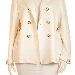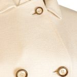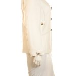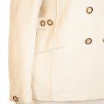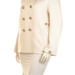 Шелковый жакет американского дизайнерского бренда класса «люкс» Carlisle молочно-белого цвета. Полу-приталенный двубортный покрой с длинным рукавом и отложным воротничком. Декоративный пояс по спинке с регулировкой по талии на пуговки (можно приталить). Фальш кармашки. Застежка на внешние перламутровые пуговки (и внутренние пуговки). В составе: 100% шелк, на подкладе из натурального ацетатного шелка — ткань исключительного качества: многослойного плетения, плотная, фактурная (жемчужная). Эксклюзив — в единственном экземпляре в России. Состояние — идеальное, как новое.