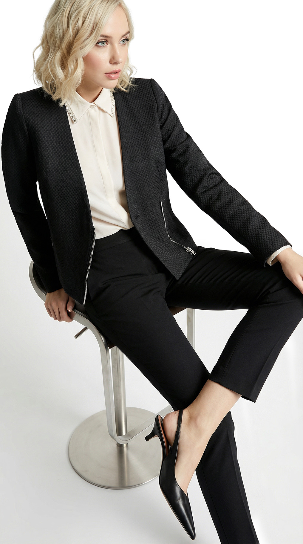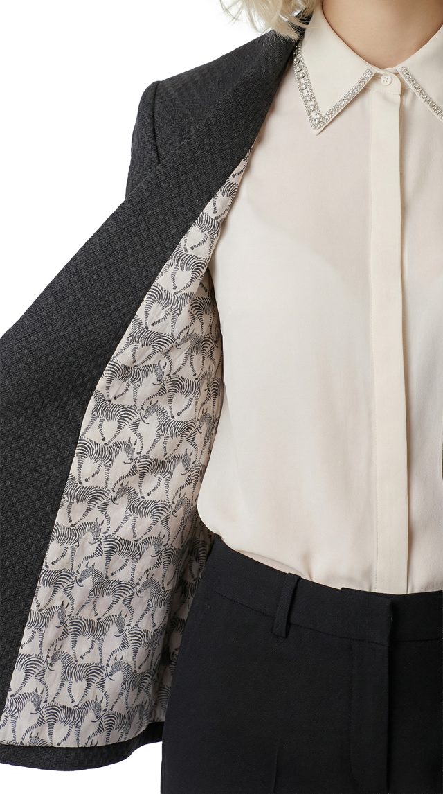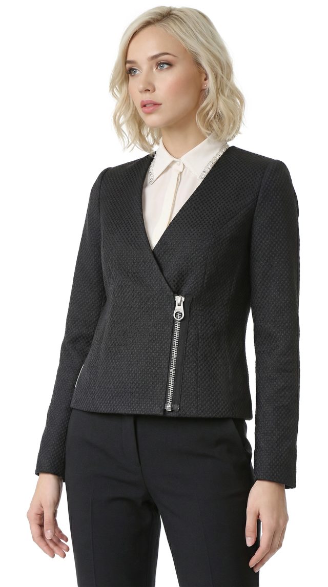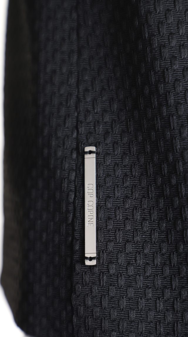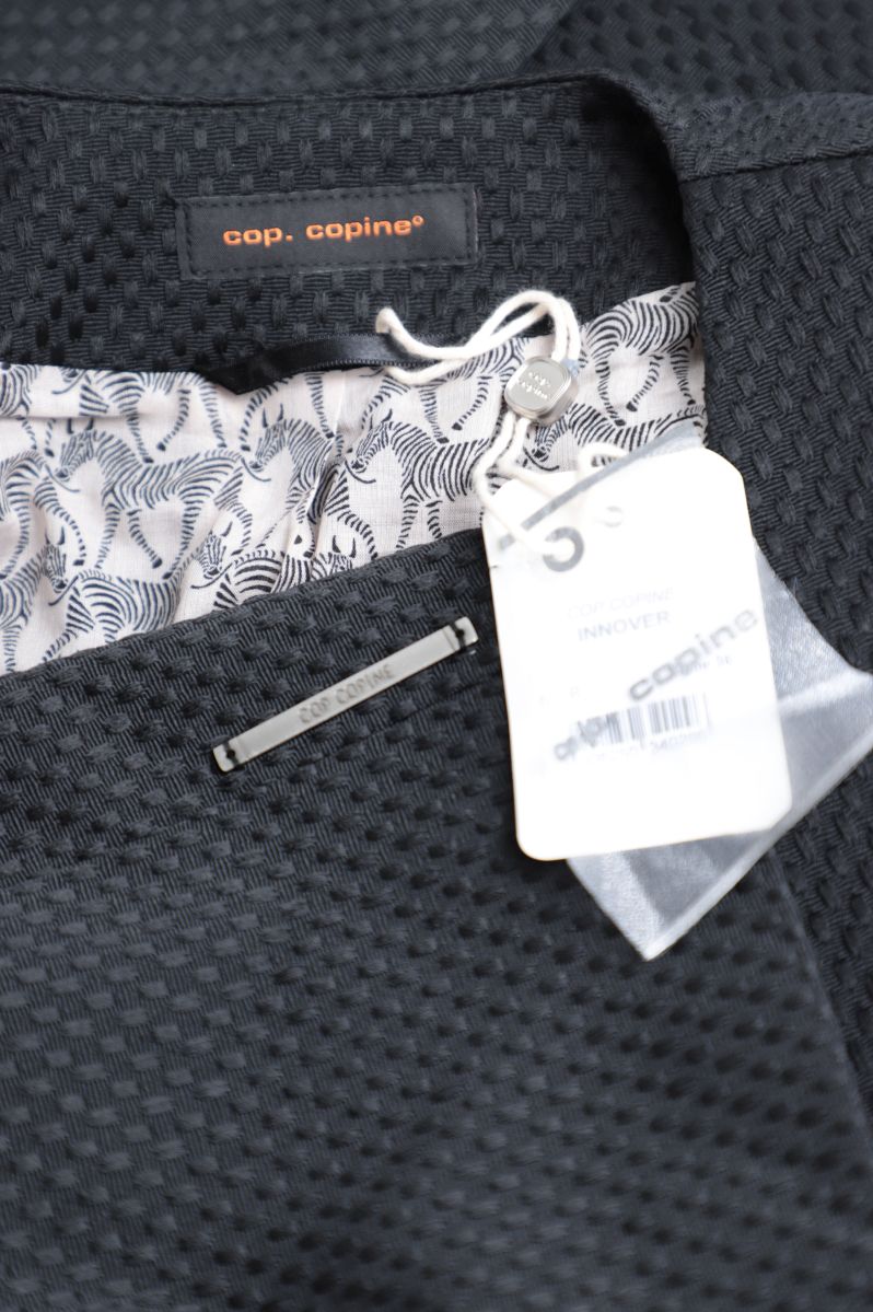 Новый хлопковый жакет легендарного французского бренда Cop Copine черного цвета. Приталенный фасон с длинным рукавом и глубокой линией декольте. Оригинальное, укороченное, оформление спинки. Застежка на стильную большую молнию. Фирменная стальная плашка Cop Copine. Неординарный подклад с зебриным принтом. В составе: 40% хлопок, 44% п.э, 11% акрил, 5% др., на подкладе из 100% натурального хлопка и ацетата — ткань плотная, фактурная. Состояние — новое, с фирменной биркой Cop Copine.
