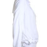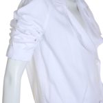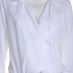 Новый жакет легендарного французского бренда Cop Copine белого цвета. Свободный прямой двубортный фасон с длинным рукавом и застежкой на пуговки. Пояс со шличками — можно подвязать в элегантный бантик. Отложной воротничок, переходящий в резные лацканы с красивым акцентом на декольте. Баска по спинке. В составе: 100% натуральный лиоцелл, без подклада — ткань легкая, необычайно мягкая. Состояние — новое, с оригинальной запломбированной биркой Cop Copine.