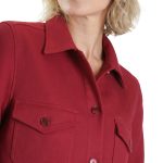 Новый жакет легендарного французского бренда Cop Copine красного цвета. Укороченный фасон с длинным рукавом и застежкой на перламутровые пуговки. Большие накладные кармашки. Классический воротничок. Баска по низу с пуговками — можно регулировать обхват. В составе: 64% п.э, 35% вискоза, 1% эластан, без подклада — ткань плотная, мягкая, по фактуре в мелкий «рубчик». Состояние — новое, с оригинальной запломбированной биркой Cop Copine.