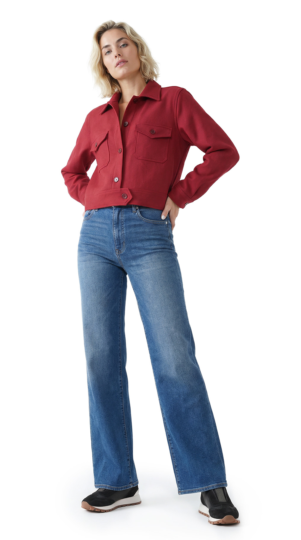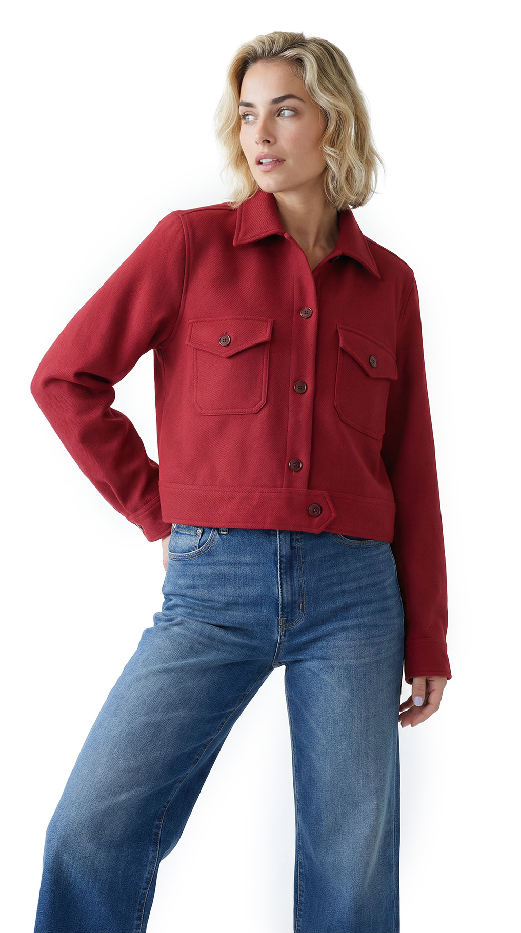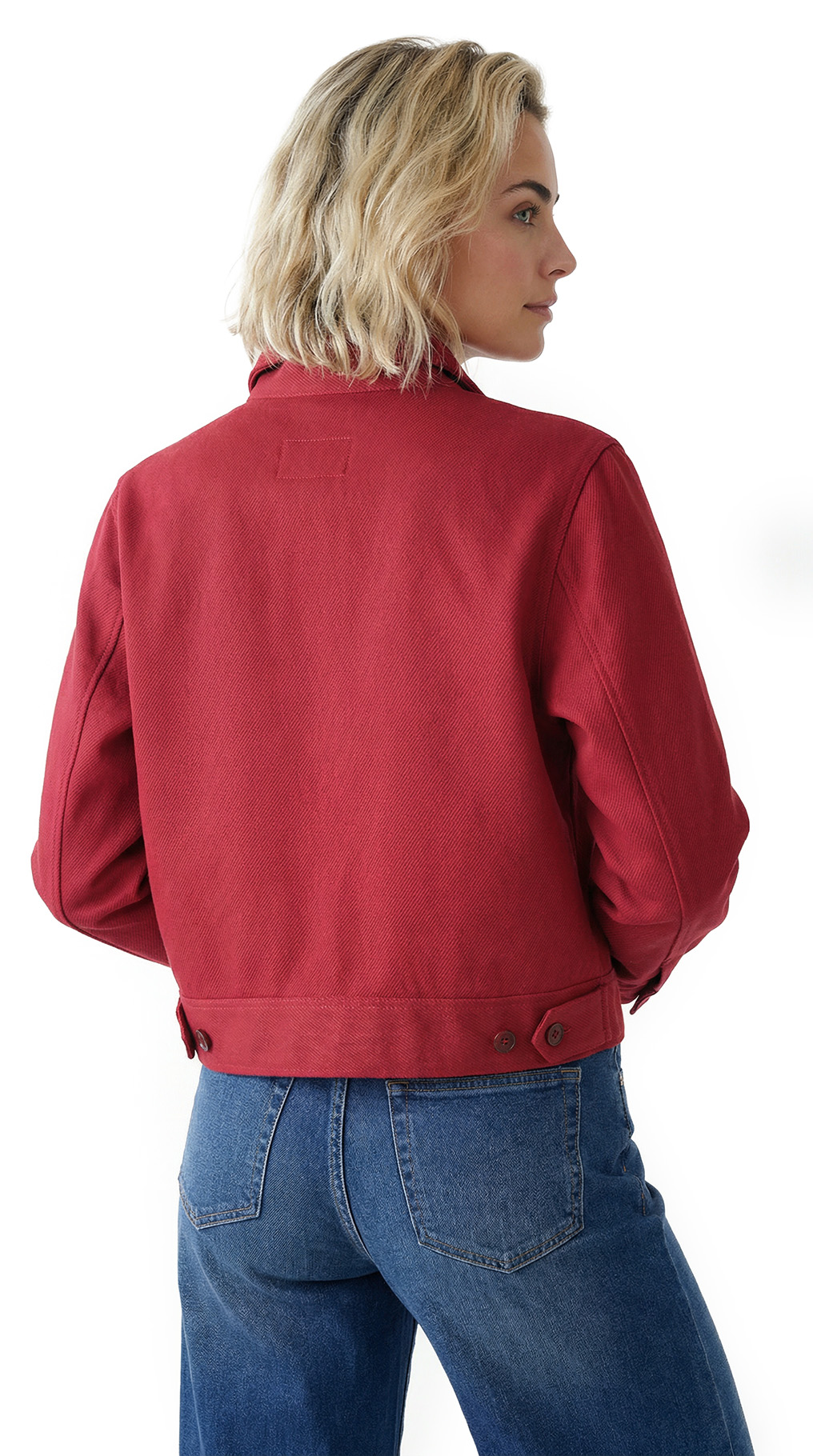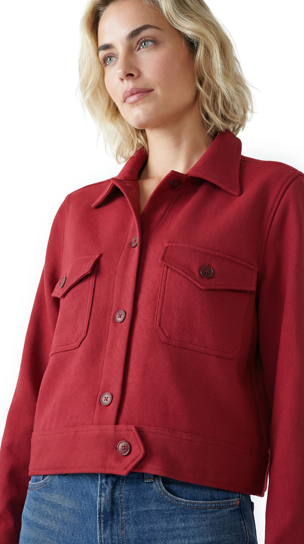 Новый жакет легендарного французского бренда Cop Copine красного цвета. Укороченный фасон с длинным рукавом и застежкой на перламутровые пуговки. Большие накладные кармашки. Классический воротничок. Баска по низу с пуговками — можно регулировать обхват. В составе: 64% п.э, 35% вискоза, 1% эластан, без подклада — ткань плотная, мягкая, по фактуре в мелкий «рубчик». Состояние — новое, с оригинальной запломбированной биркой Cop Copine.