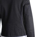 Джинсовый жакет Ralph Lauren черного цвета с заплатками на локтях и плечиках. Полу-приталенный фасон с застежкой на солидную серебряную молнию. Врезные кармашки на молнии. Красивая декоративная отстрочка по спинке. Воротничок стойка с застежкой на фирменные кнопочки. В составе: 99%, хлопок, 1% эластан, без подклада — ткань плотная, по фактуре джинсовая. Оригинал из США. Состояние — идеальное, как новое.