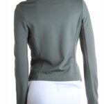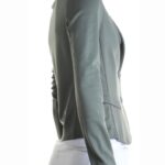 Трикотажный жакет модного итальянского бренда Imperial приглушенного зеленого цвета. Женственный приталенный фасон с длинным рукавом и застежкой на пуговки. Отложной воротничок с глубоким вырезом декольте. Декоративные фальш-кармашки по талии. В составе: 68% вискоза, 27% полиамид, 5% эластан, без подклада — ткань мягкая, шелковистая, хорошо тянется. Пошив — Италия. Состояние — хорошее.