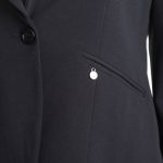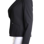 Новый классический жакет итальянского бренда Kitana by Rinascimento черного цвета. Женственный приталенный фасон с глубоким декольте, резными лацканами и застежкой на одну пуговку. Врезные кармашки по бокам, декорированные золотой подвеской. Универсальное дополнение к гардеробу. В составе: 95% п/э, 5% эластан, на подкладе — ткань плотная, мягкая, по фактуре «крепе». Состояние — новое, с фирменной биркой Kitana.