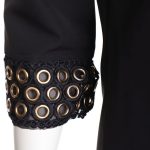 Новый кардиган итальянского бренда Rinascimento (коллекция Kitana) черного цвета с яркой отделкой рукавов золотыми люверсами. Прямой удлиненный фасон с открытым запахом и застежкой на 2 крючка — носить его можно нараспах, или застегнуть на крючки. В составе: 96% п/э, 4% эластан — ткань плотная, бархатистая, эластичная. Состояние — новое, с фирменной биркой Kitana by Rinascimento.