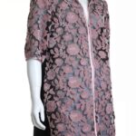 Новый ажурный кардиган итальянского бренда Rinascimento (Kitana) с набивным цветочным принтом в пудровом цвете по черной сеточке. Свободный прямой удлиненный фасон с открытым запахом, который можно носить нараспах, или застегнуть сверху на два крючка. Рукав длиной 1/2. Втачные кармашки в боковых швах. В составе: п/э — ткань легкая, мягкая. Состояние — новое, с фирменной биркой Kitana by Rinascimento.