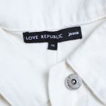 Новый джинсовый жакет Love Republic теплого белого цвета. Свободный укороченный фасон «оверсайз» с длинным приспущенным рукавом реглан и застежкой на брендированные пуговки. Классический отложной воротничок. Большие накладные кармашки на груди. В составе: 100% хлопок — ткань плотная, мягкая. Состояние — новое, без бирки (распродажа стока официального магазина).